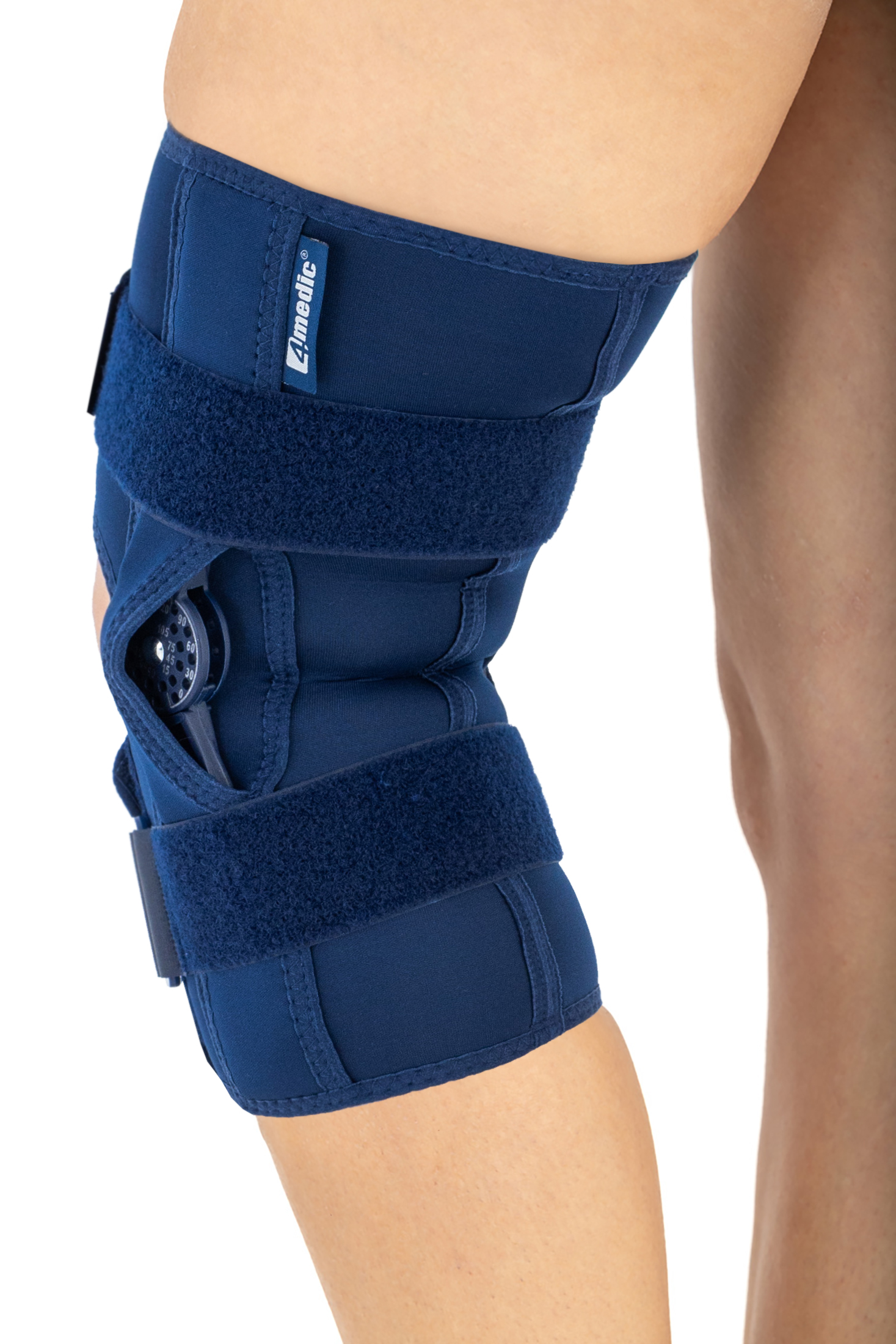 Das Produkt wird mit einachsigen, laterale Schienen ausgestattet, die aus mit Kohlefasern verstärktem hochwertigem Kunststoff hergestellt werden. Ein Schienensystem in der Orthese und ihre spezifische Elastizität gewährleisten richtige Anpassung des Produktes an die gesicherte Gliedmaße und ermöglichen optimale Stabilisierung des Gelenkes. Die Schienen wurden mit polyzentrischen Gelenken, die Einstellung des Flexions- und Extensionswinkels in 15-Grad-Schritten ermöglichen, ausgestattet.