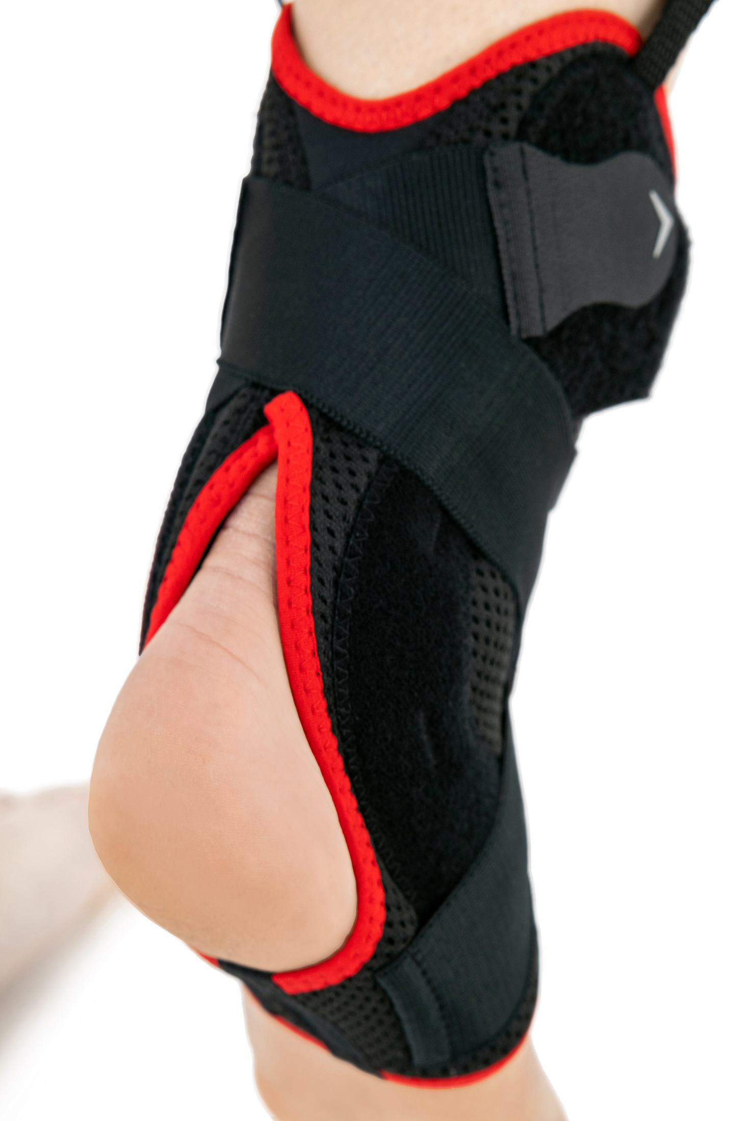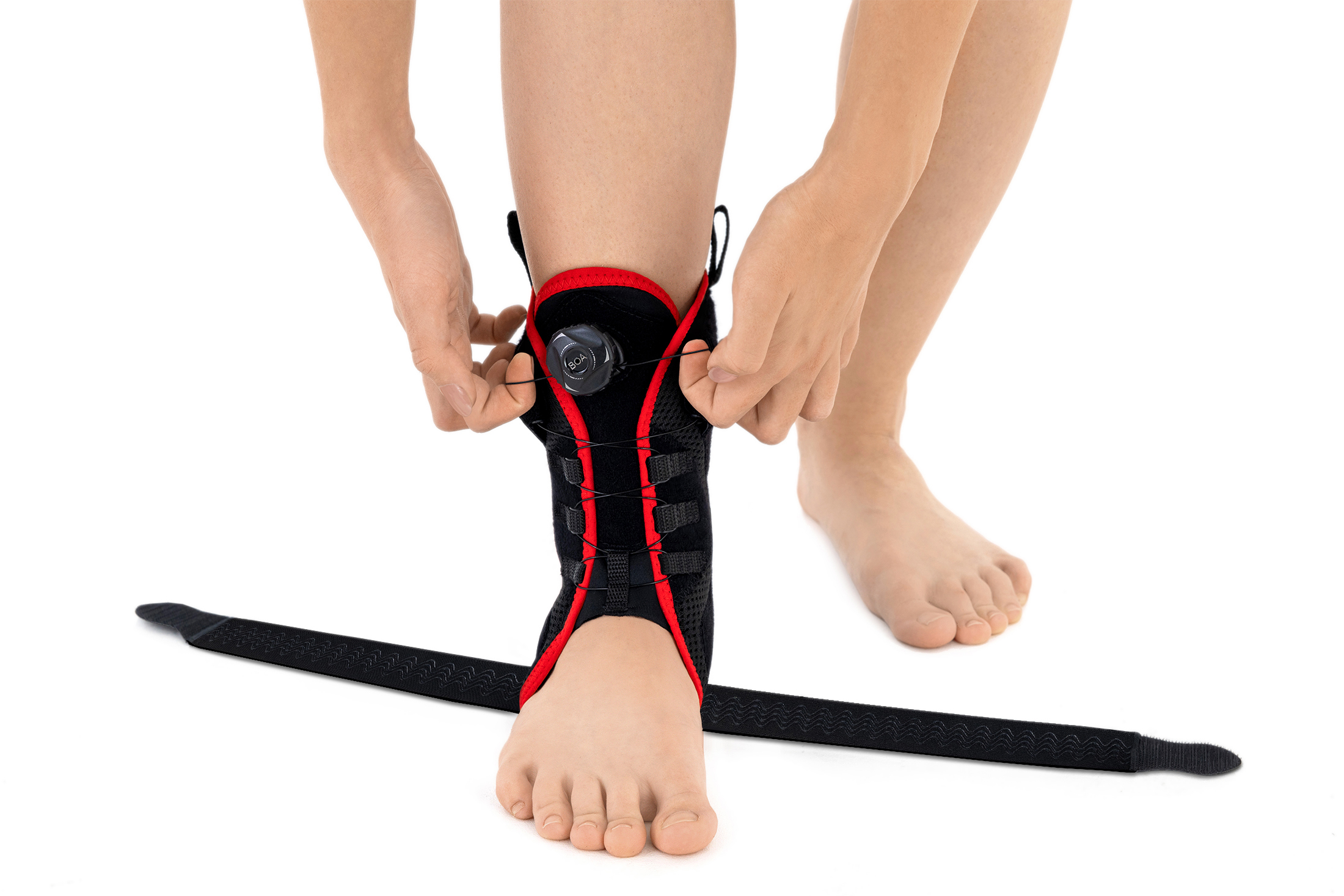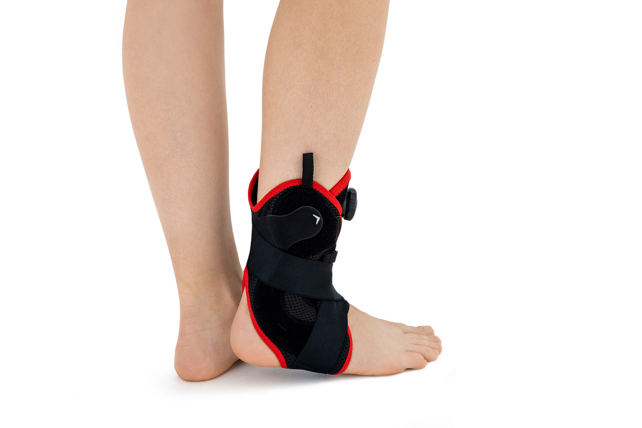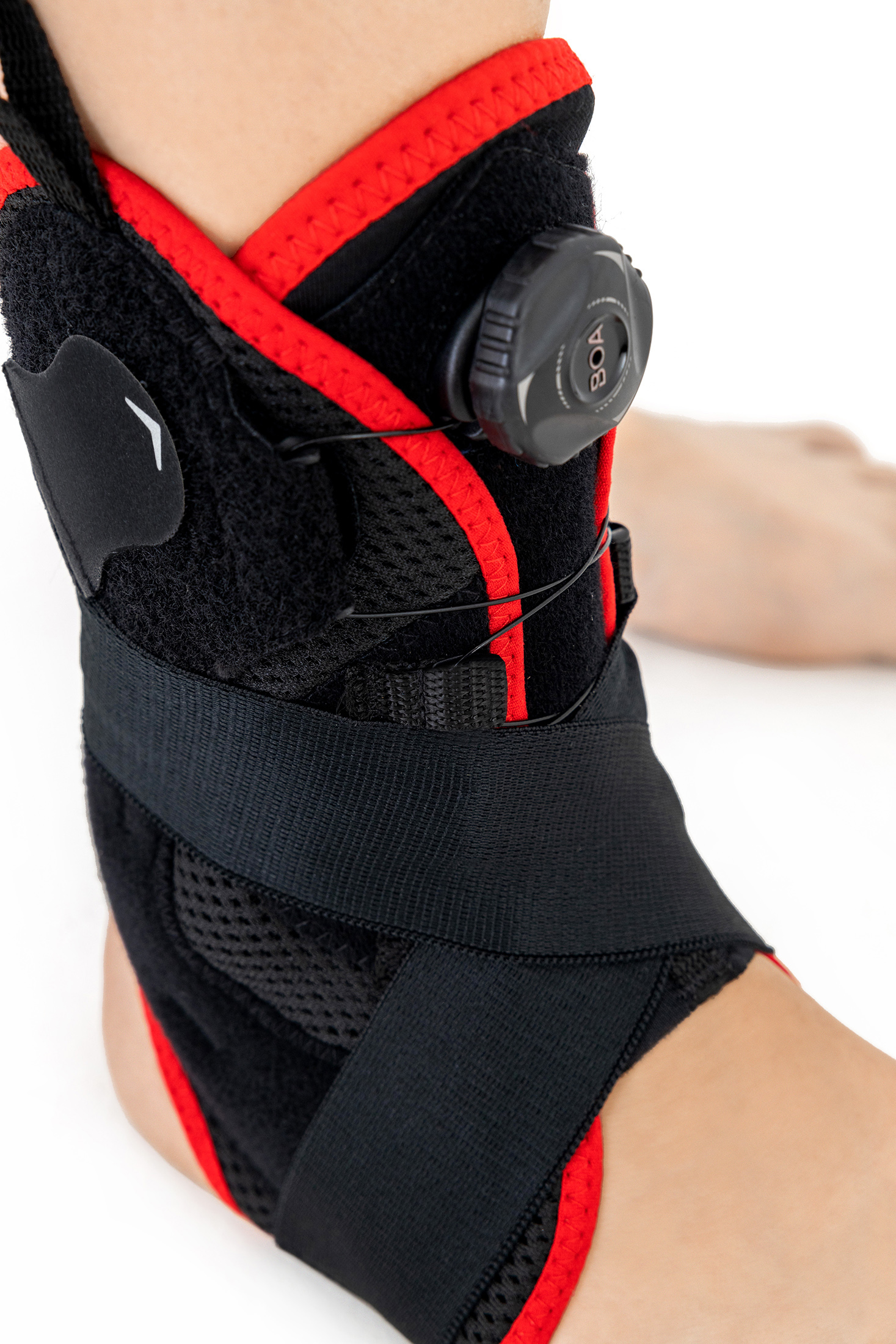 Die AM-OSS-05/CCA Fußbandage mit Seitenschienen, einstellbaren Schnürleibern und umkreuzenden, dynamischen Schnallbändern versichert ausgezeichnete Stabilisierung des Fußgelenks.