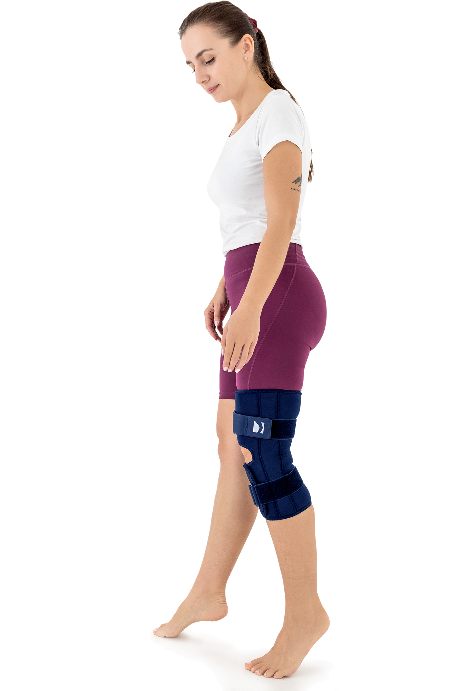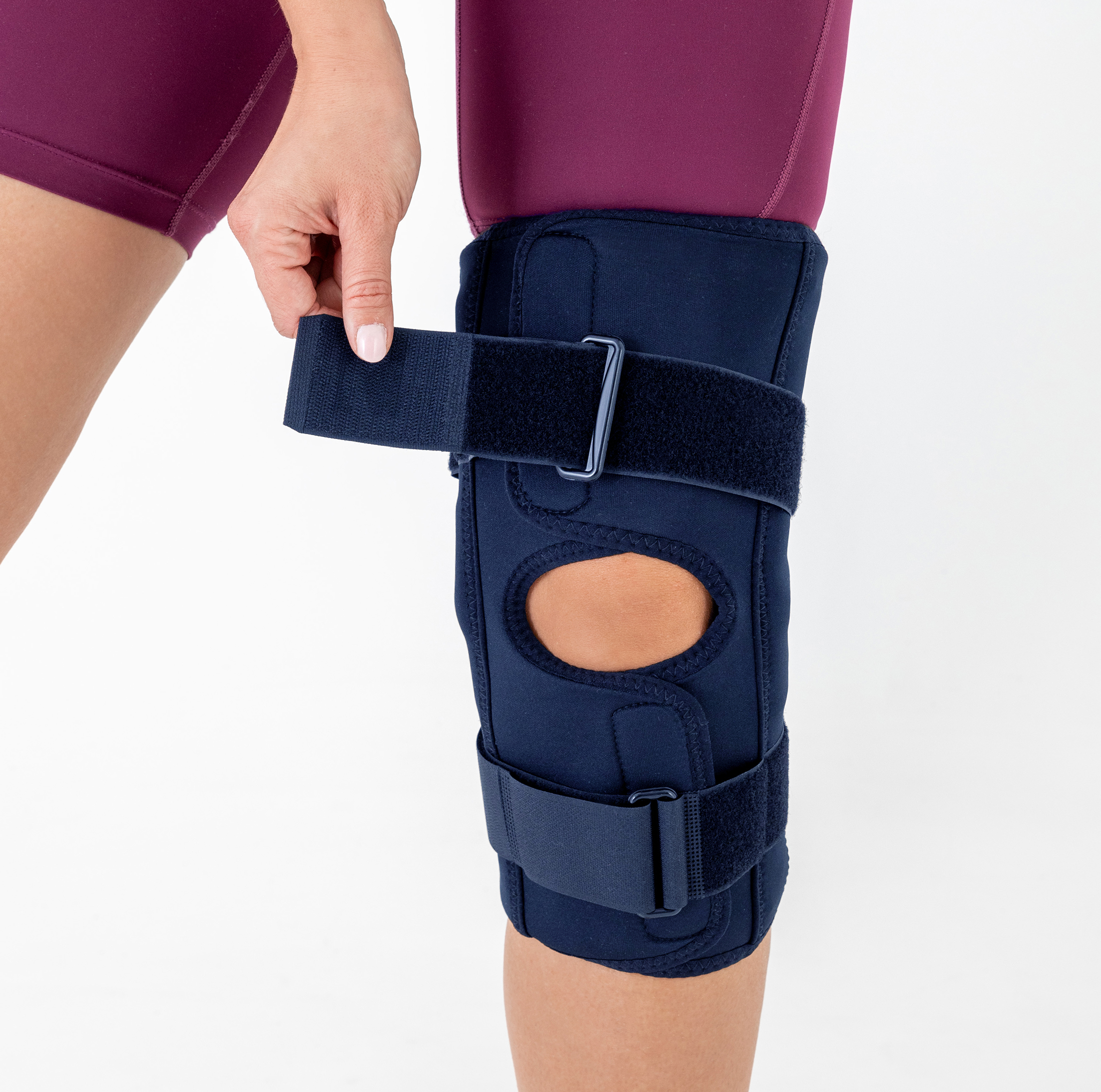 Thanks to its wraparound, anatomical design, the brace fits both the right and left leg.