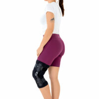 Knee brace is made of perforated foam, which is coated with lining fabric. It holds two independent supported sets of the Velcro tapes. The device is equipped with two sides, shaped splints, which are made of carbon fibres and consists of special drop lock allowing for ROM adjustment in every 15°. This precise adjustment facilities the rehabilitation process. The system of splints in open knee brace is arranged in a shape of X letter, which allows to adhere perfectly to the limb and also enables to stabilize the joint precisely. Internal perforation allows skin to breath and reduces overheating. Using of anatomic patella support made of foam with antimycotic properties provides maximum stabilization of the patellofemoral joint.