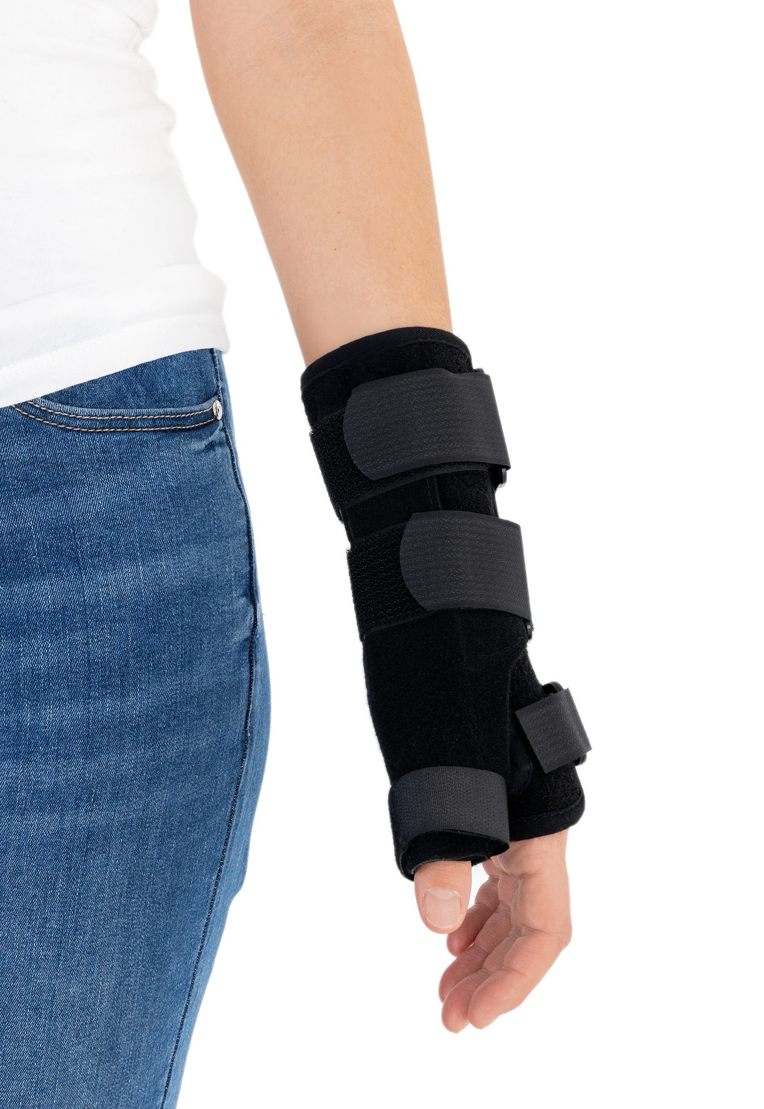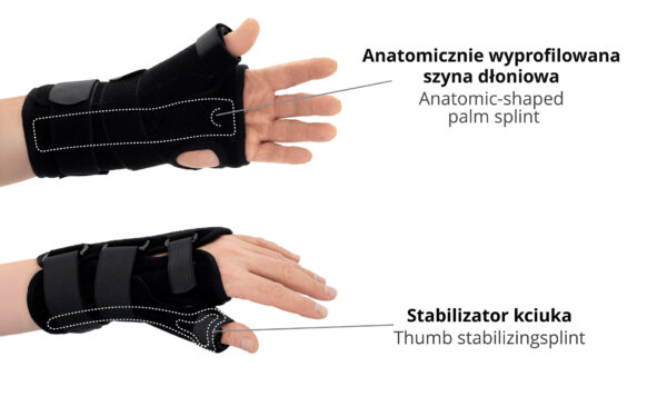 The wrist and forearm brace with a detachable thumb splint is a medical device intended for the stabilisation and unloading of the wrist joint and thumb joint.