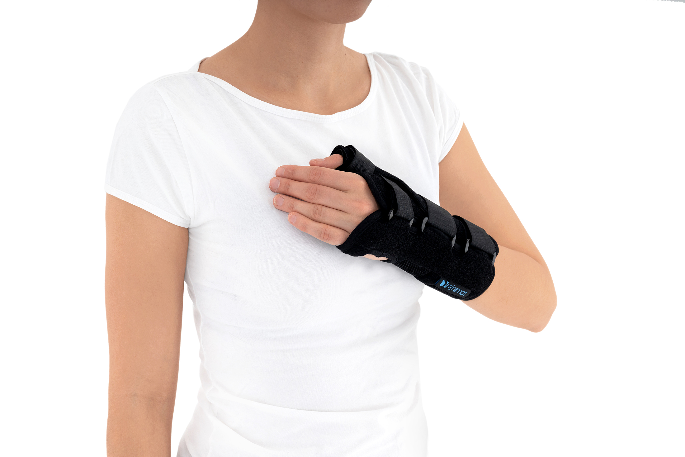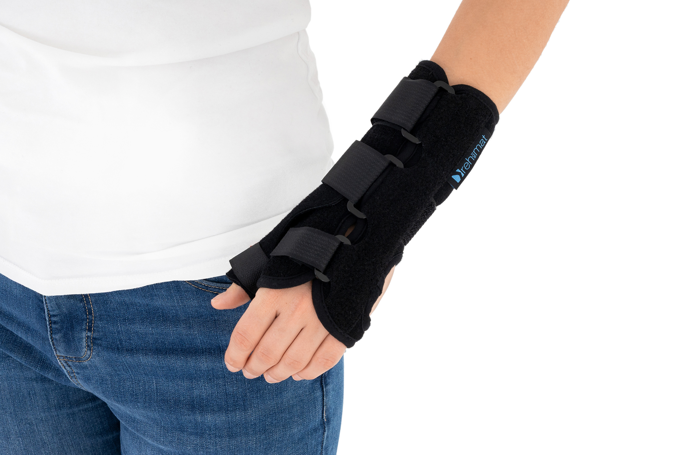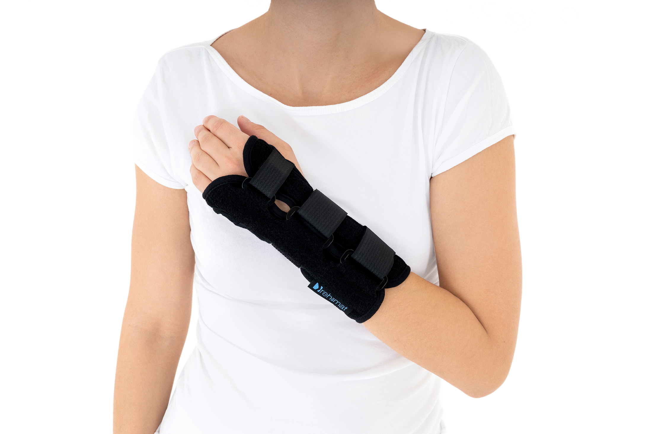 The wrist brace may be used prophylactically, conservatively, after injuries, as well as during the recovery period following cast immobilisation. The removable thumb splint allows for individual adjustment of the level of immobilisation according to the patient’s current therapeutic needs.