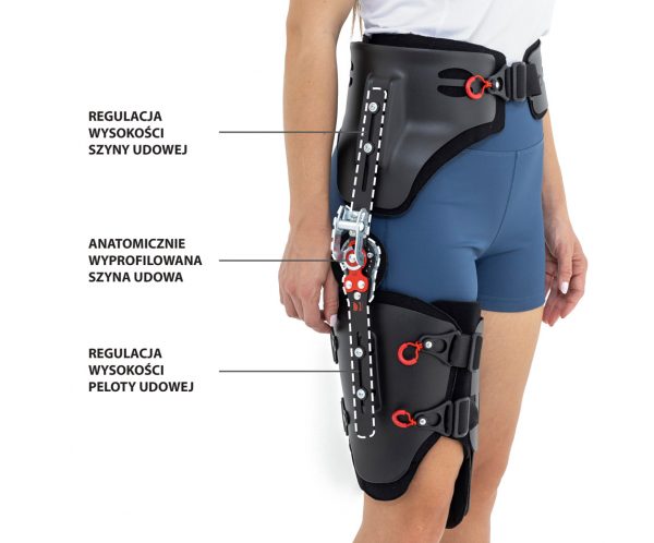 Uniwersalna orteza stawu biodrowego z regulacją kąta zgięcia stawu biodrowego oraz odwiedzeniem kończyny dolnej
