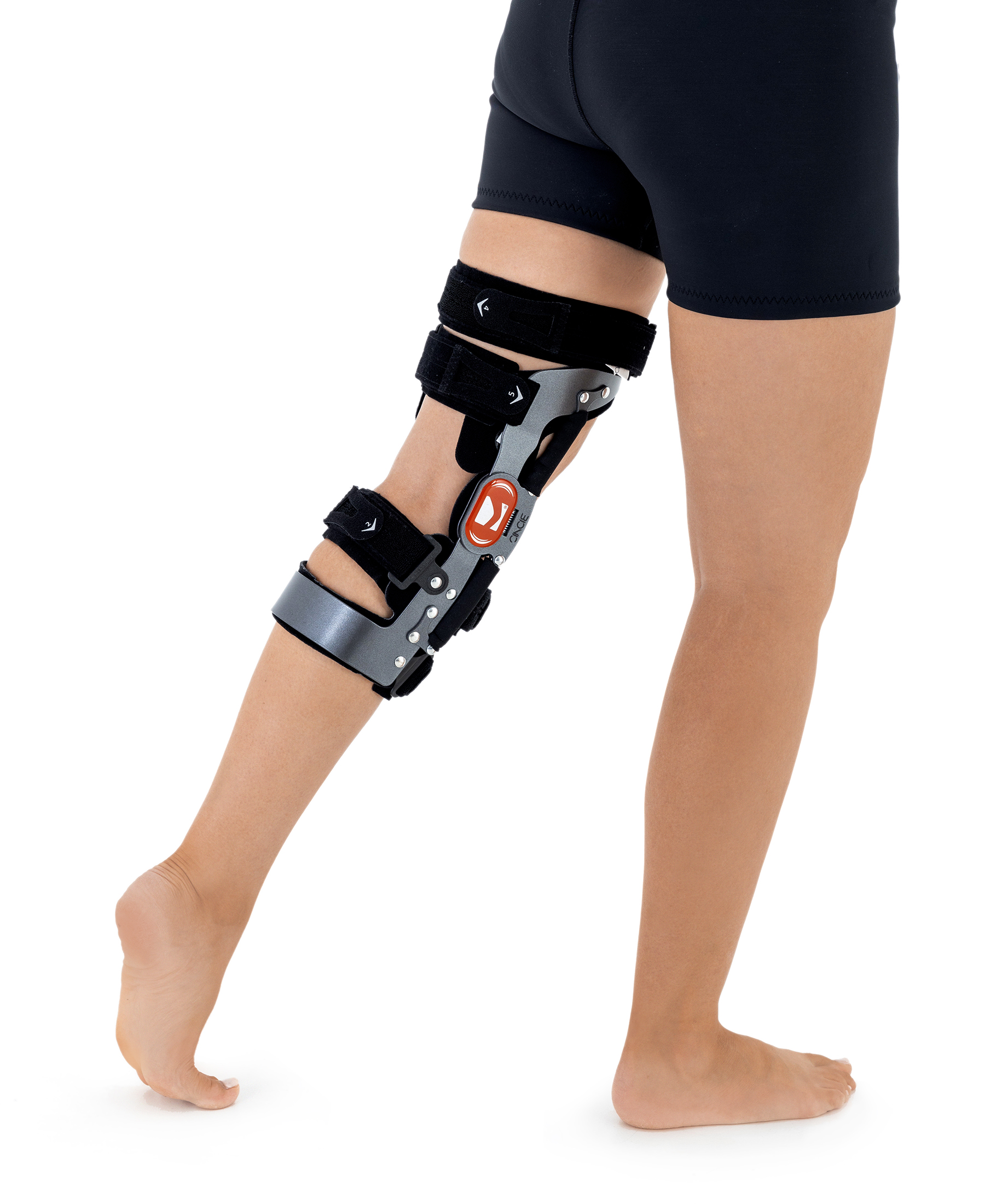1-punkt przyłożony jest na przedniej stronie uda poprzez mocną aluminiową ramę.