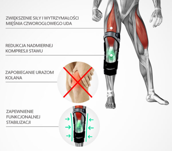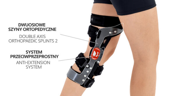 W rezultacie, orteza nie tylko stabilizuje staw kolanowy, ale dodatkowo zwiększa jego siłę i wytrzymałość.