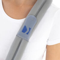 Połączenie pasa z rzepowym zapięciem na haczyk zapewnia użytkownikom i pacjentom łatwą regulację podparcia ramienia.