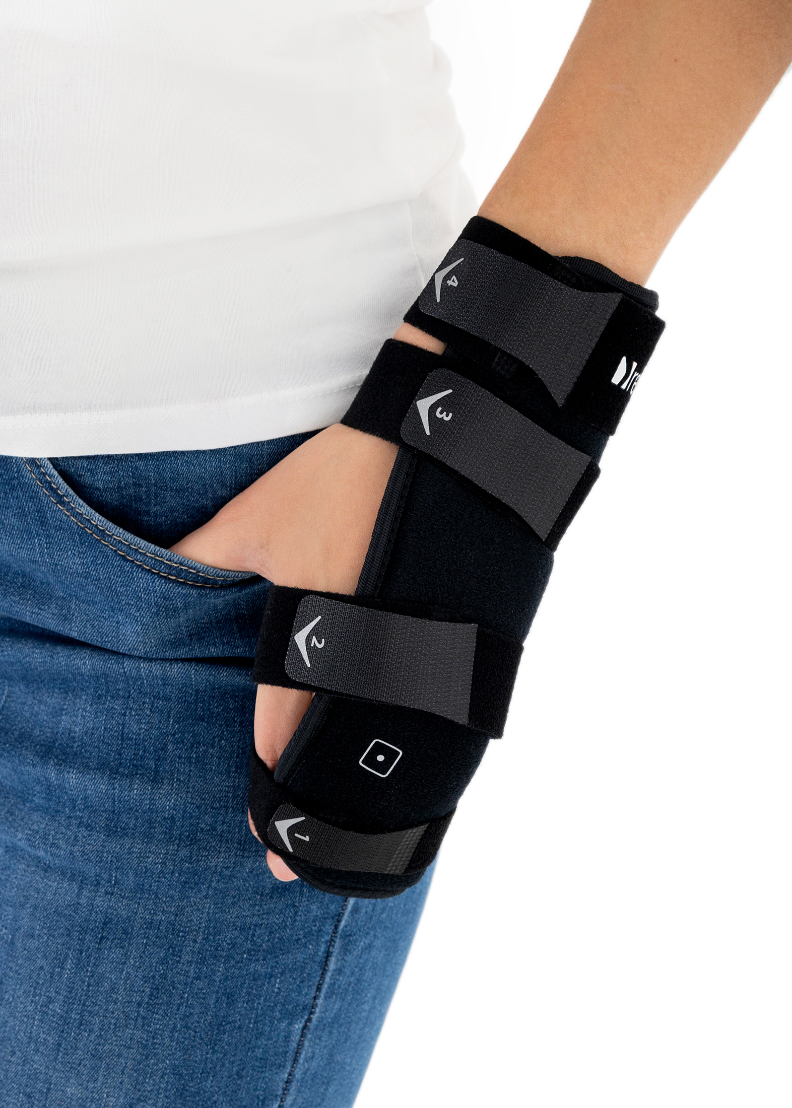 Dzięki zastosowaniu anatomicznie wyprofilowanej konstrukcji oraz sztywnej wkładki stabilizującej, orteza utrzymuje dłoń w fizjologicznej pozycji, ograniczając niepożądane ruchy i wspierając prawidłowy proces gojenia, zarówno palców IV i V dłoni jak i okolicznych stawów, w tym stawu nadgarstka.