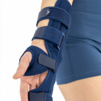 - posiada osłonę nasady kciuka z rzepami, zabezpieczającą ortezę przed niekontrolowaną migracją ortezy na kończynie