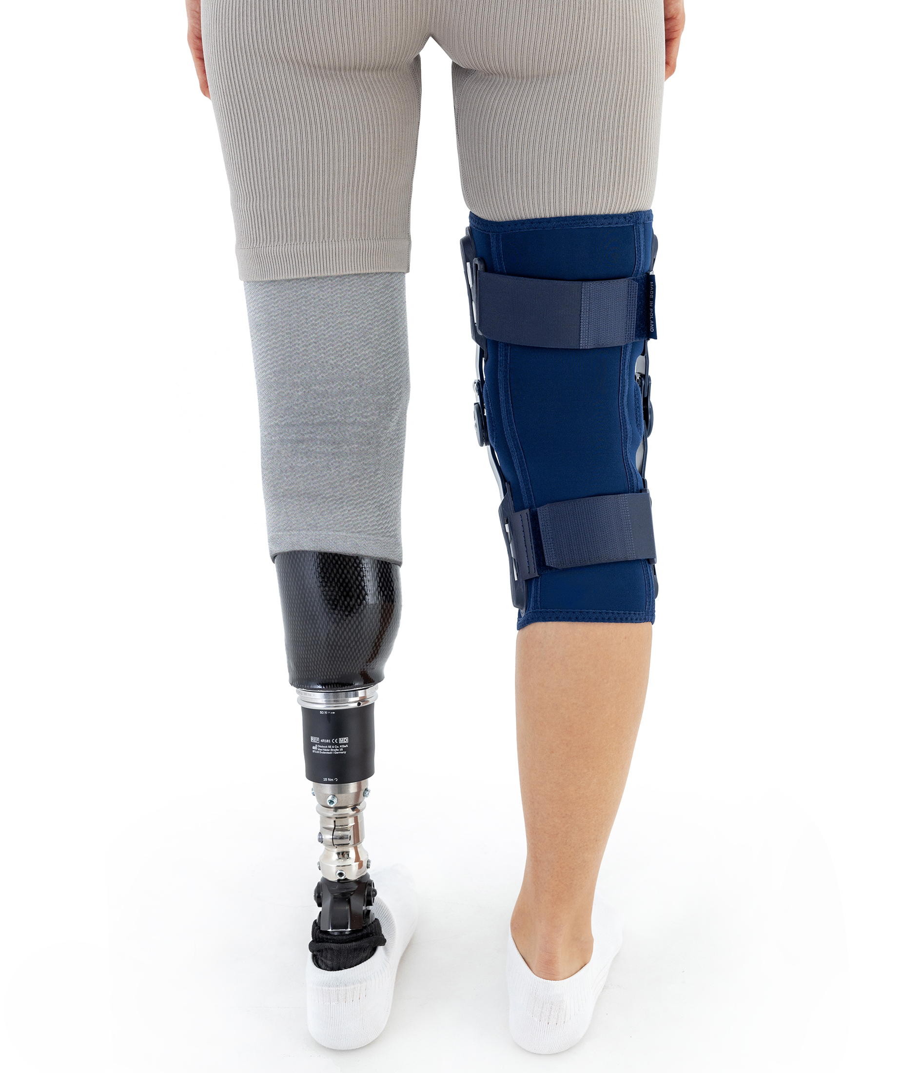Orteza posiada zamkniętą konstrukcję, która dokładnie obejmuje staw kolanowy i mięśnie uda oraz podudzia. Taka forma zwiększa stabilizację boczną i przednio-tylną, zapobiega przesuwaniu się wyrobu podczas ruchu oraz gwarantuje równomierną kompresję.