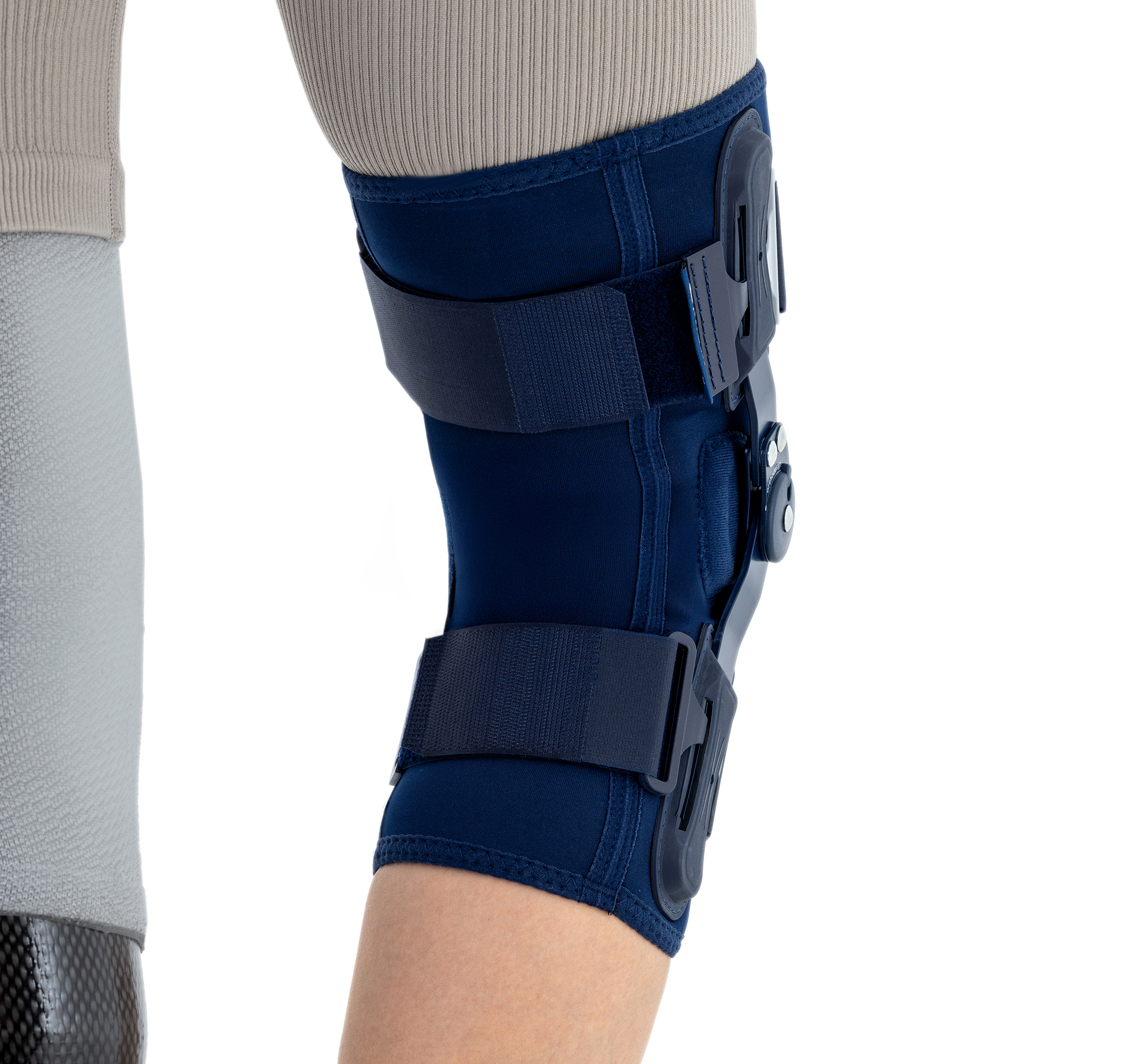 Wyposażona w stabilne szyny boczne z anatomicznym zegarem 1R orthodesign, zapewniającym szeroki zakres regulacji ruchomości stawu co 15 stopni i pozwala na dostosowanie ortezy do indywidualnych potrzeb użytkownika.