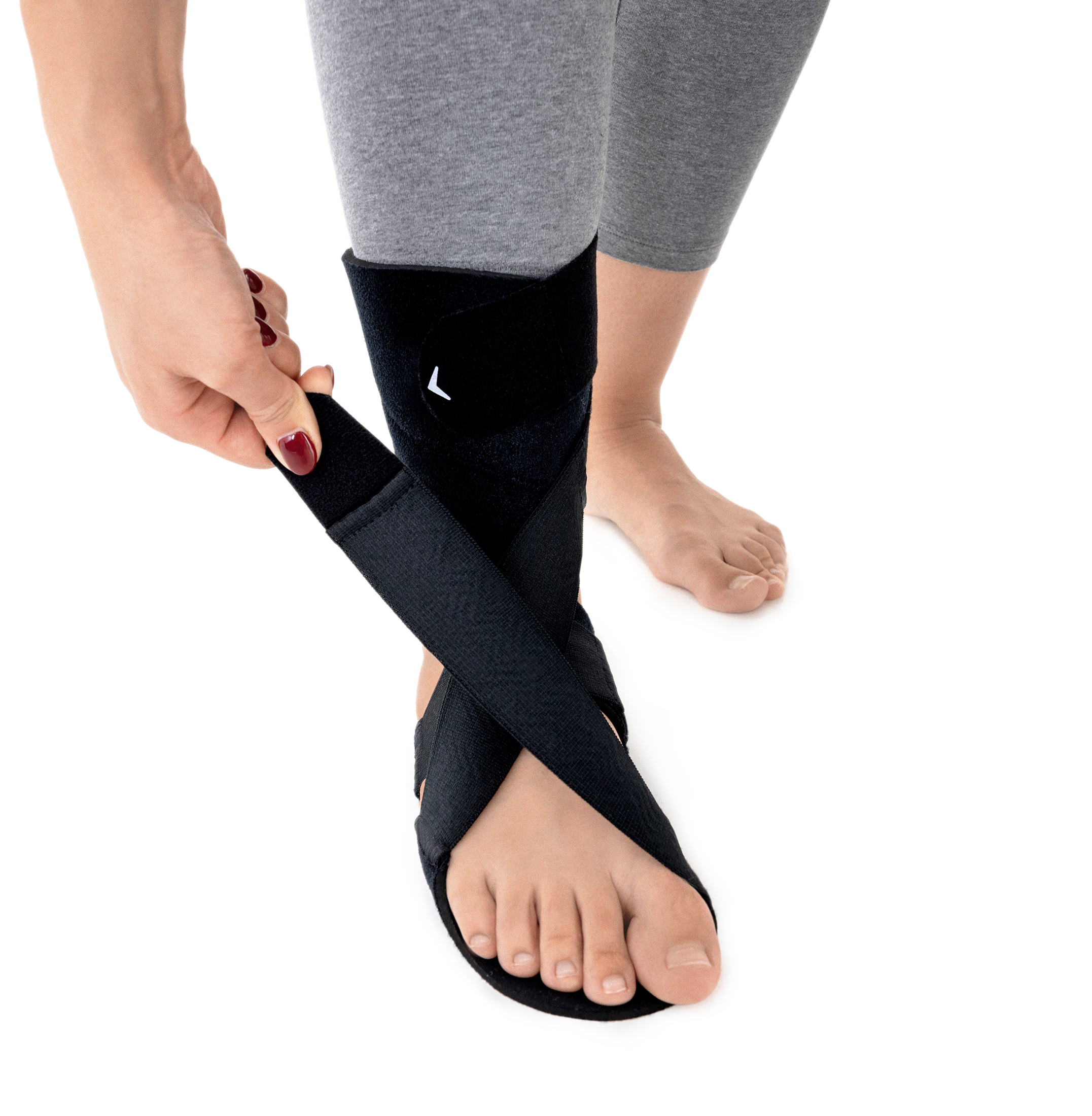 Elastyczne pasy kompresyjne zapewniają płynną regulację kąta ustawienia zgięcia grzbietowego stopy w zakresie 45°–135°. Orteza umożliwia utrzymanie pozycji stawu skokowego w kącie prostym, stopniowo unosząc przodostopie, ułatwiając tym samym swobodny chód i rozciągając tkanki podeszwowe i ścięgno Achillesa. Unoszenie palców zapobiega suwaniu stopą o podłoże, co jest kluczowe w terapii opadającej stopy.