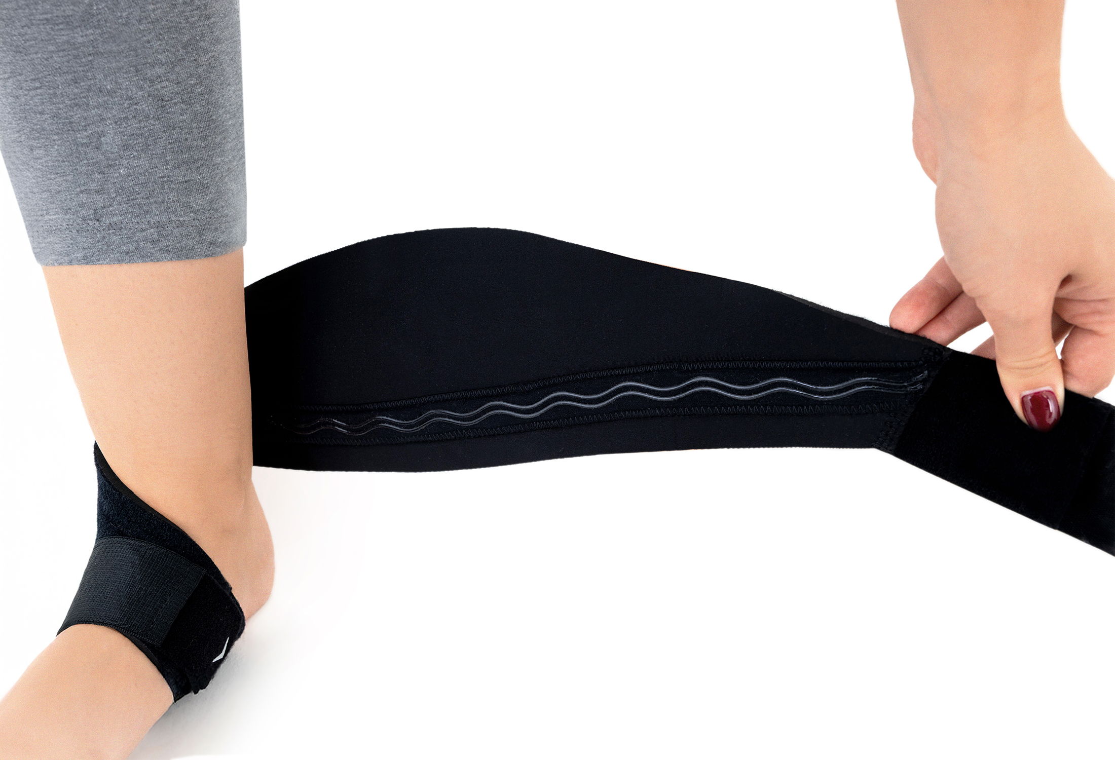 Orteza posiada otwartą konstrukcję, a krzyżowe zapięcie rzepowe umożliwia pełne dopasowanie produktu do anatomii kończyny dolnej. Zapięcie posiada silikonową wyściółkę zapobiegającą niekontrolowanemu przesuwaniu pasków w trakcie użytkowania.