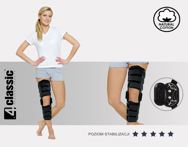 ORTEZA NA GOLEŃ I UDO Z POLICENTRYCZNĄ REGULACJĄ ZAKRESU RUCHOMOŚCI CO 20 STOPNI